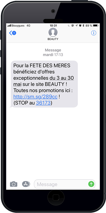 La fête des mères est un événement marketing à ne surtout pas manquer car il va permettre d'augmenter vos ventes, de conquérir de nouveaux clients et de renforcer votre image de marque ! Il est important pour les entreprises de choisir les bons canaux pour communiquer sur leurs actions marketing en ayant un impact puissant. Depuis quelques temps déjà, l’envoi de campagnes SMS a convaincu les entreprises grâce à sa rapidité d’exécution et son rapport efficacité/prix imbattable !